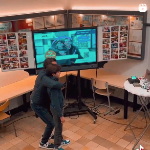 Daarnaast hebben we het beeldscherm omgetoverd tot een soort fotobooth. Waarbij leerlingen een foto van zichzelf kunnen maken, printen en een eigen persoonlijke karakter eronder kunnen schrijven. Op de foto staat alle informatie die je nodig hebt over het HLZ. De foto dient dus als een soort folder.