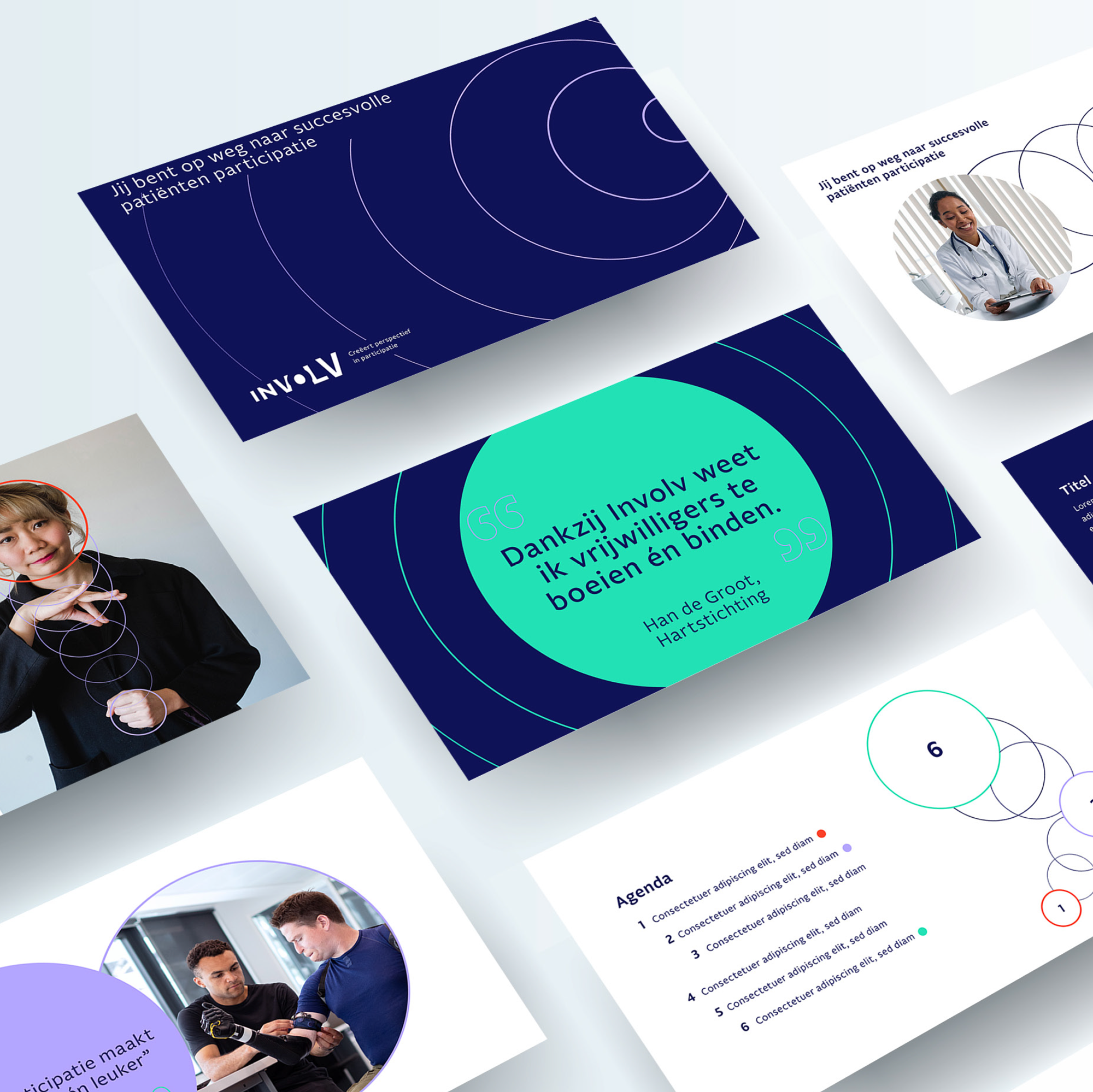 Voor Involv creëerden we vervolgens een nieuwe visuele identiteit. Passend bij de nieuwe identiteit en merkwaarden. Een belangrijke stap was om de nieuwe visuele richting te toetsen onder stakeholders. We organiseerden daarom drie sessies – met als doel te achterhalen of de gekozen visuele richting inderdaad de nieuwe merkwaarden laadt en raakt. Met de waardevolle uitkomsten uit dit kwalitatieve onderzoek, hebben we de juiste keuzen gemaakt om tot het definitieve design te komen.