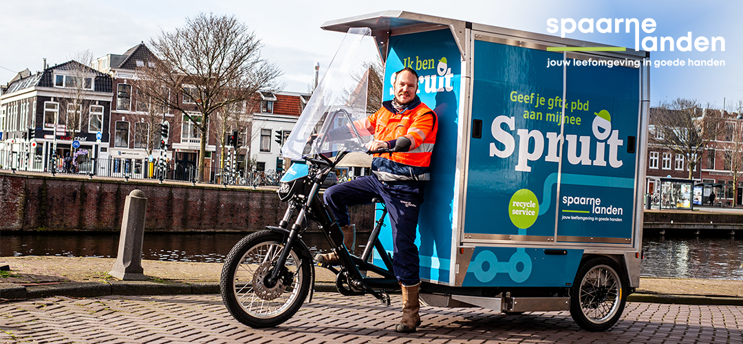 De nieuwe ophaalservice dopen we Spruit. Een knipoog naar de spruit: de kleinste van een familie zijn. Ga maar na: de fietsen en andere klein elektrische vervoersmiddelen zijn vriendelijke mini-varianten van de grote recyclewagens. Spruit is bovendien een groente, een verwijzing naar een van de 2 afvalstromen die door Spruit worden verzameld: Gft en Pbd.