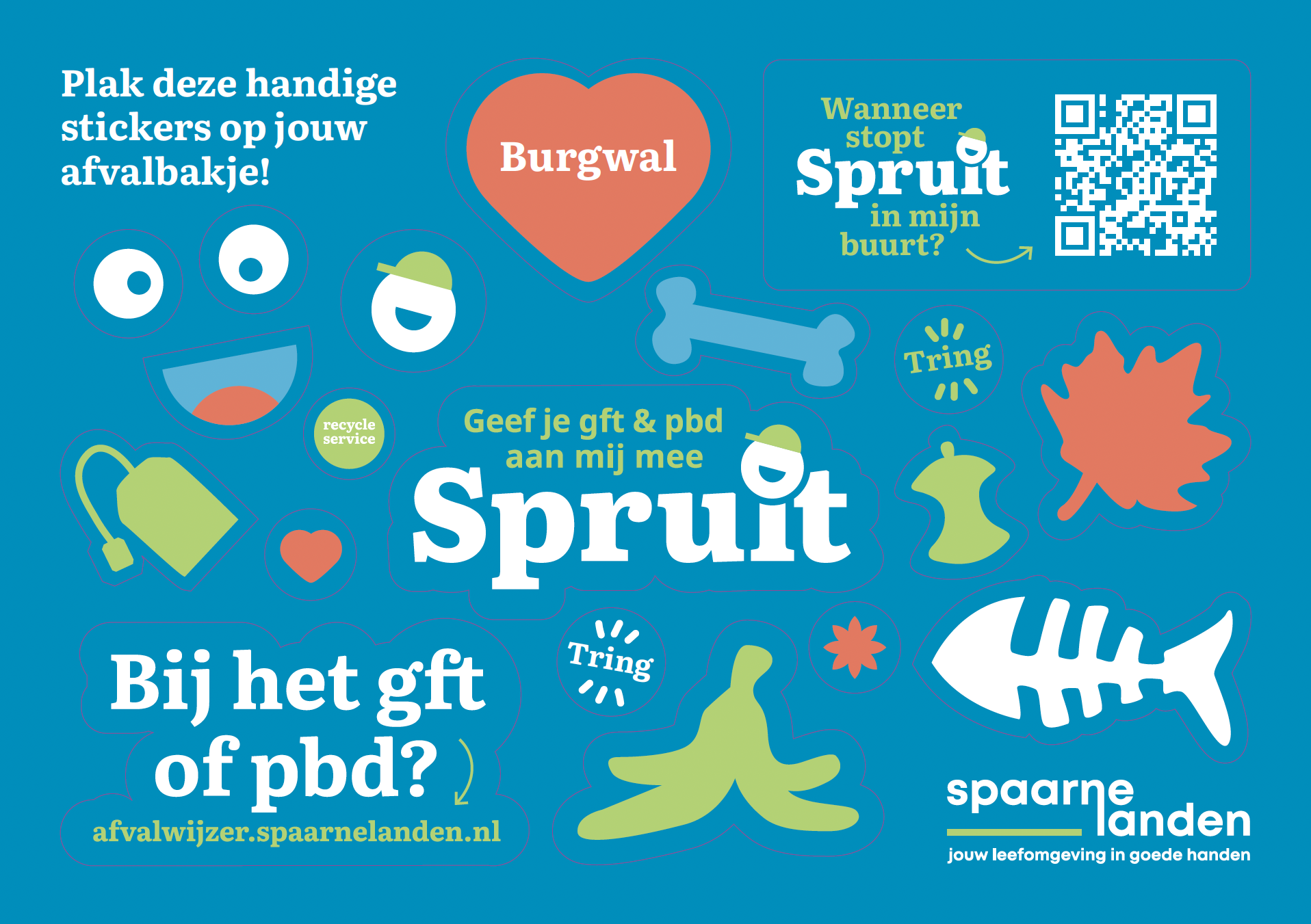 De nieuwe ophaalservice dopen we Spruit. Een knipoog naar de spruit: de kleinste van een familie zijn. Ga maar na: de fietsen en andere klein elektrische vervoersmiddelen zijn vriendelijke mini-varianten van de grote recyclewagens. Spruit is bovendien een groente, een verwijzing naar een van de 2 afvalstromen die door Spruit worden verzameld: Gft en Pbd.
